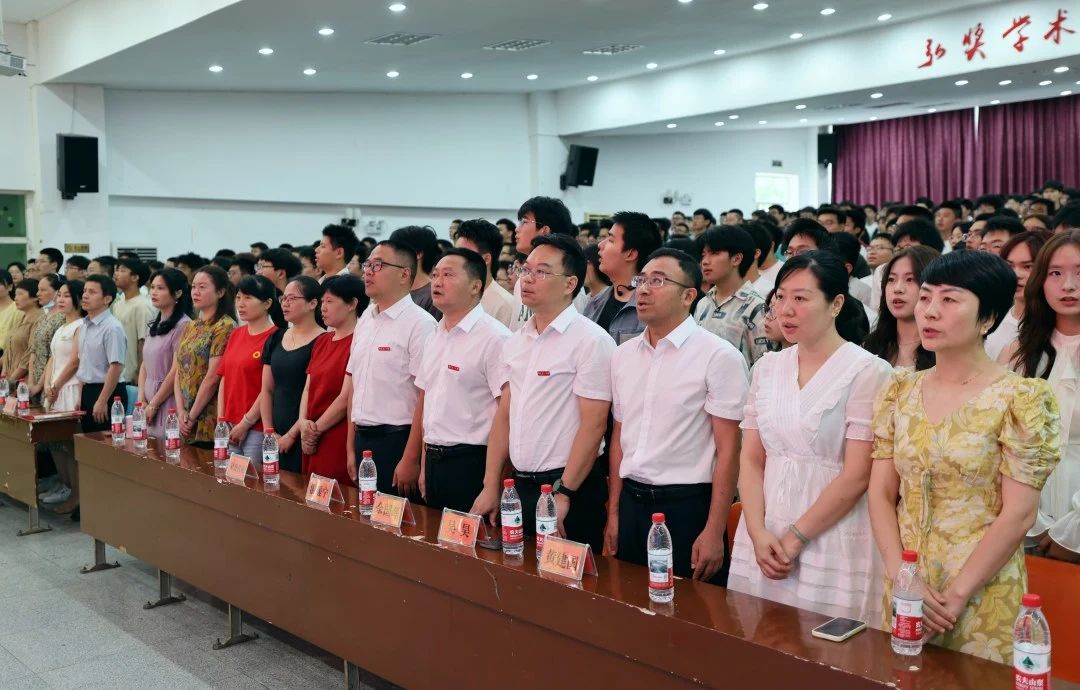 典礼缓缓拉开帷幕。全场起立,庄严的国歌奏响,激昂的旋律回荡在整个报告厅。