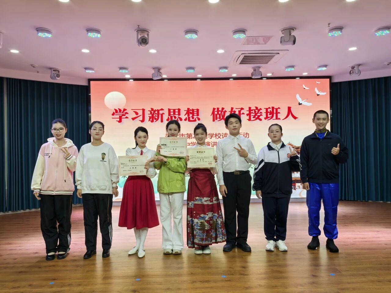 个人奖项:姚宇珊同学演讲《逐梦强国征程,争做时代先锋》,获一等奖;吴丽妃同学演讲《家国在心中,奋斗正当时》,获二等奖。