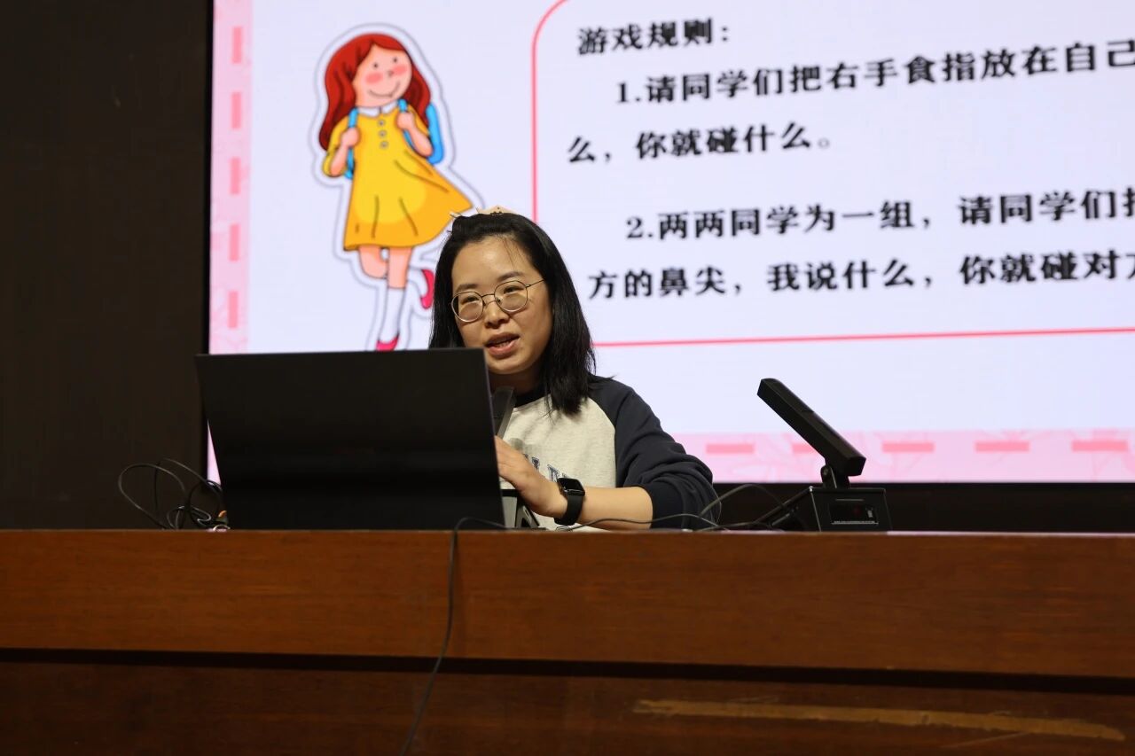 讲座中,徐老师以“身体对对碰”互动游戏,引导女生在协作交流中增进自我认知、建立 “身体边界”重视度,明确“身体红灯区”底线;随后结合案例普及性侵害识别方法、危害及危急应对策略与求助途径,强调“生命安全优先”。