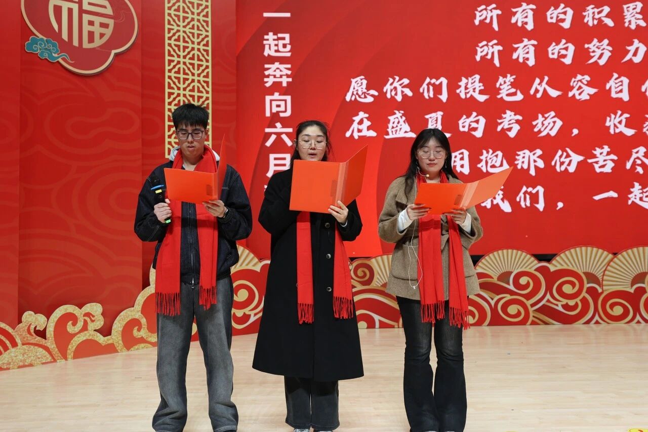 余国辉校长作冲刺动员讲话,向全体高三教师、家长致以敬意与感谢,为学子送上鼓舞与期许。他以国家科技突破、冬奥健儿拼搏事例激励学子,号召将个人梦想融入时代洪流,以校内优秀学子为榜样,以笔为剑、以志为帆,百日砺行、六月圆梦。