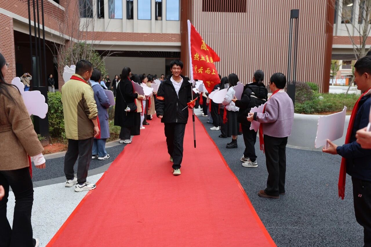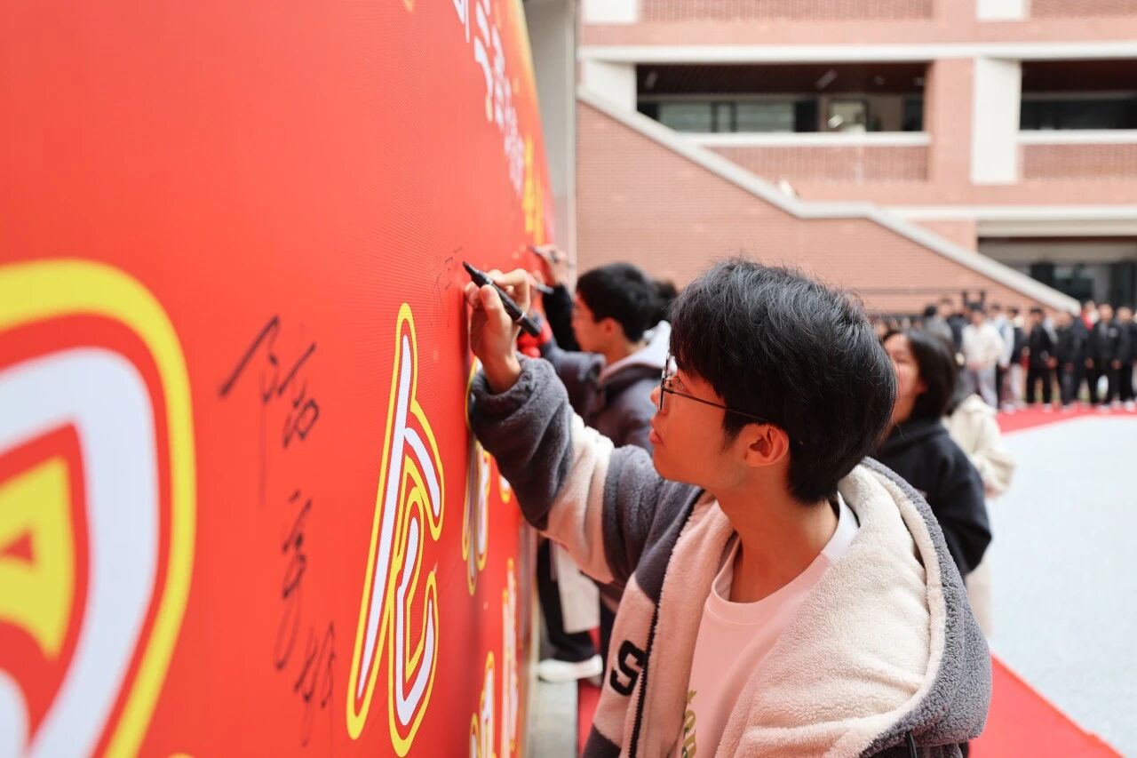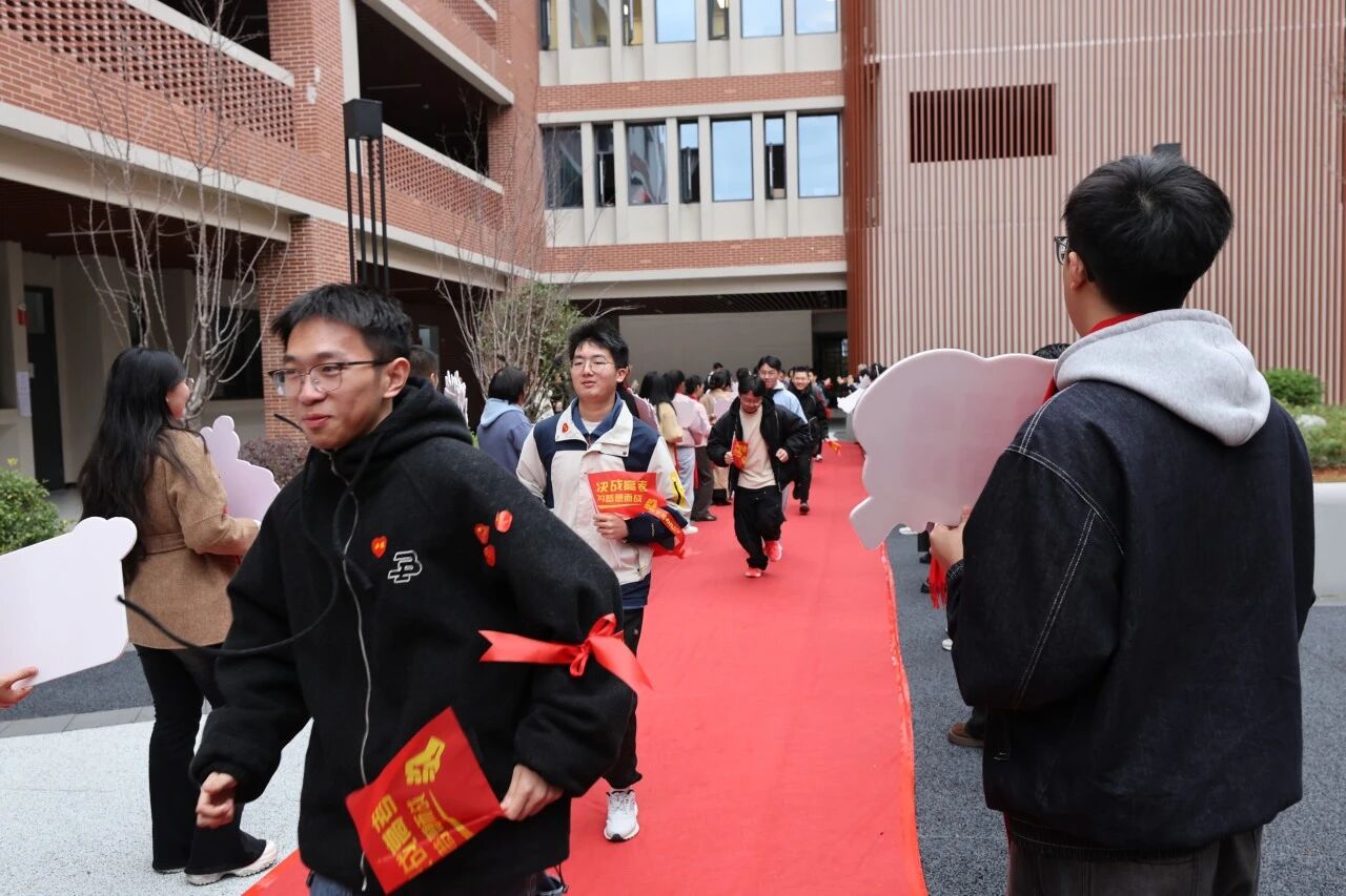 师生共踏状元红毯,在"梦想墙"上写下誓言。