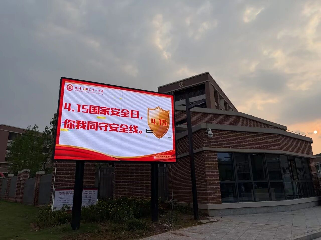 为让国家安全理念深入人心,学校充分利用校门口LED大屏幕,播放“点滴行动汇成海,共同守护国之脉”等主题宣传标语,图文并茂、简洁有力地传递国家安全知识,营造出“人人关注国家安全、人人参与国家安全”的浓厚校园氛围,让每一位师生、家长在进出校园时都能受到安全教育的熏陶,潜移默化中强化安全意识。