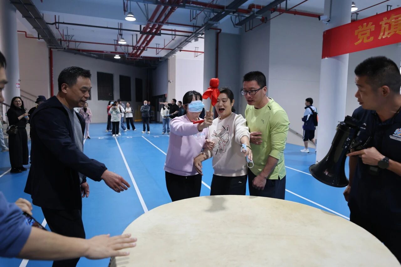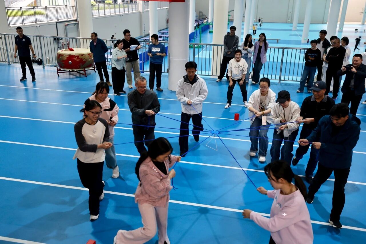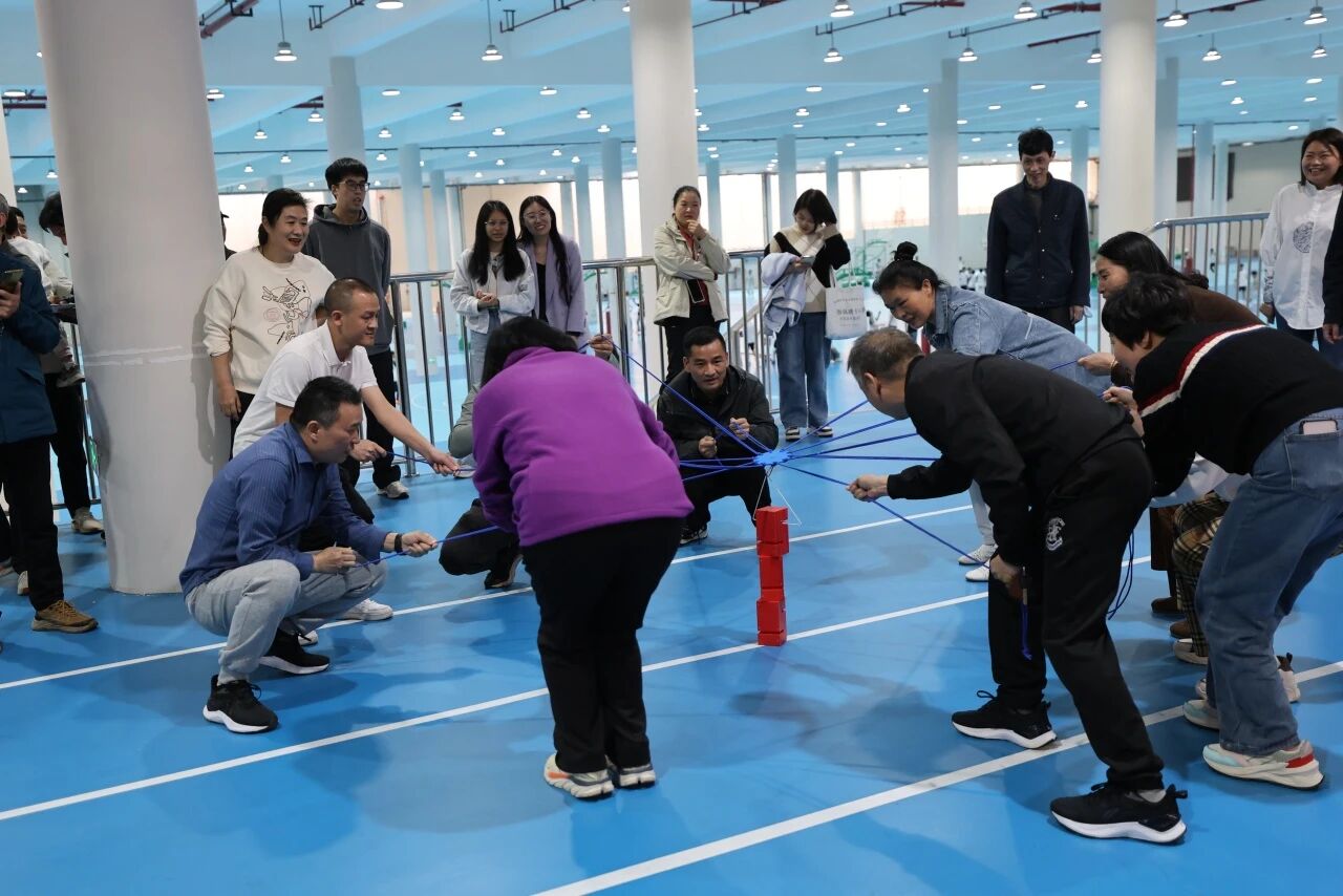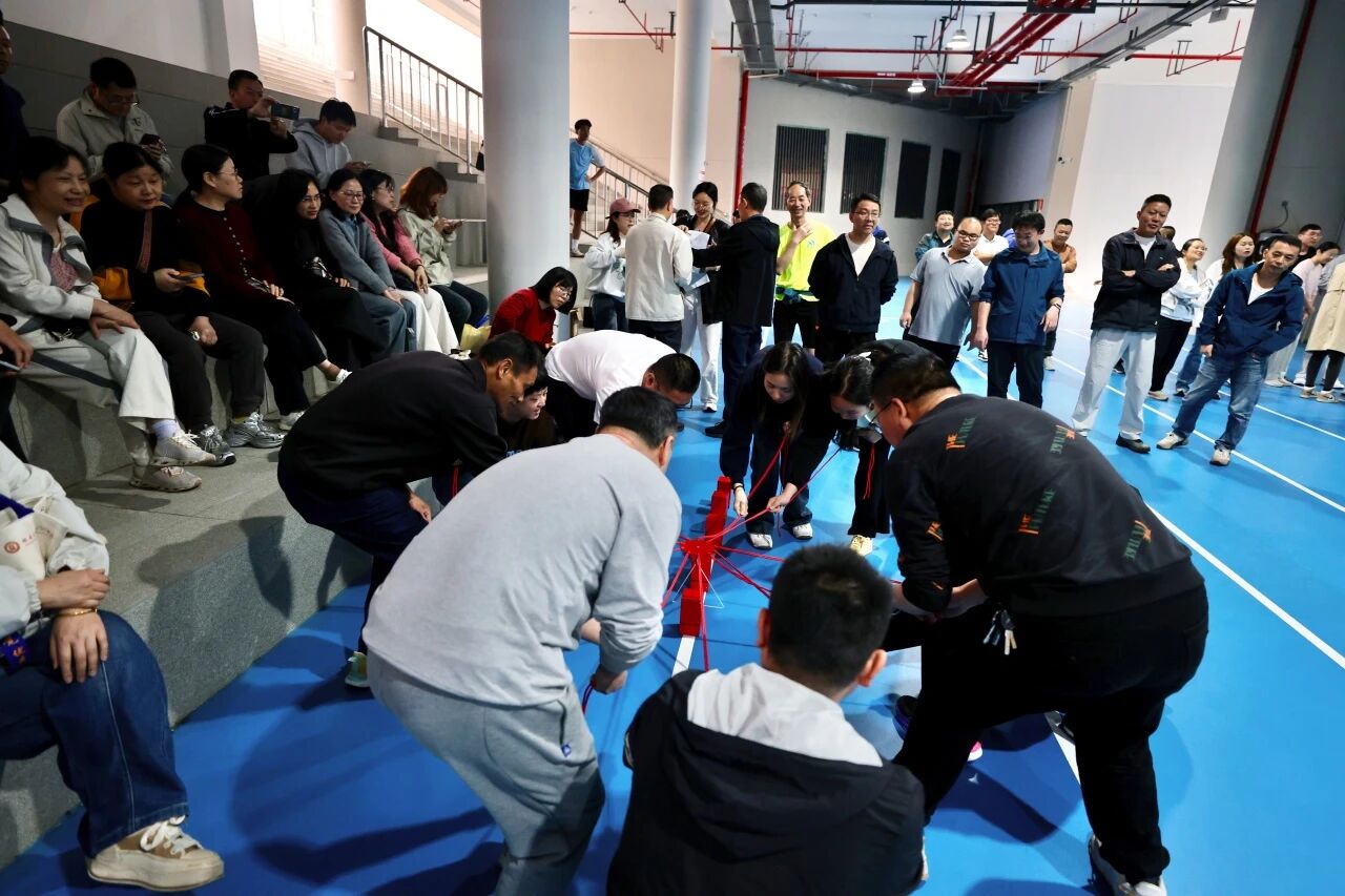 蒙眼打鼓环节,参赛队员听从指令、沉着出发,在队友的鼓励与引导下精准击鼓,接力传递中尽显默契;合力筑塔项目里,大家同心牵拉绳索、精准控制积木,齐心协力搭建起稳固的“高塔”,充分展现了团结协作、奋勇争先的团队精神。赛场内外欢声笑语不断,加油声、喝彩声此起彼伏,洋溢着轻松和谐的节日氛围。