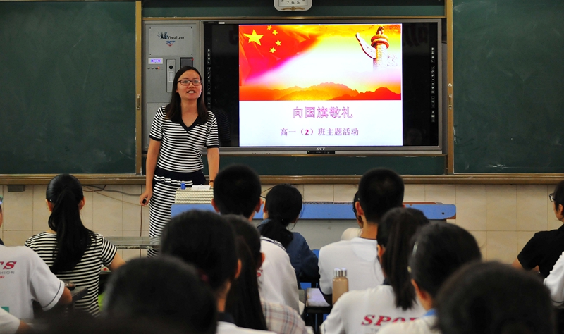 近日,我校组织开展“向国旗敬礼”活动。学校组织师生参加“向国旗敬礼”网上签名寄语活动。高一(2)班、高一(9)班等班级召开了“向国旗敬礼”主题班会。