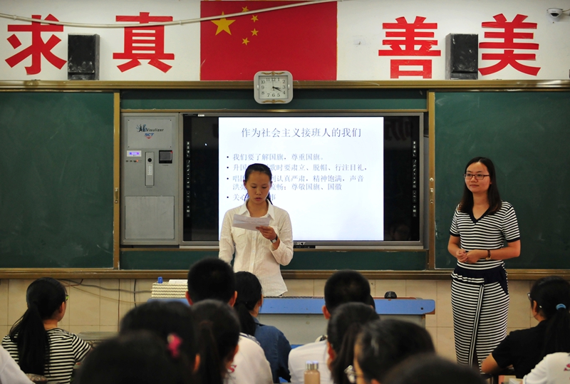 通过开展“向国旗敬礼”活动,师生们庆祝伟大的中华人民共和国成立67周年,纪念中国工农红军长征胜利80周年。师生们学习和弘扬伟大的爱国主义精神和长征精神,培育和践行社会主义核心价值观,抒发热爱祖国、祝福祖国的情感,表达为实现民族复兴中国梦努力学习、全面发展的远大志向。