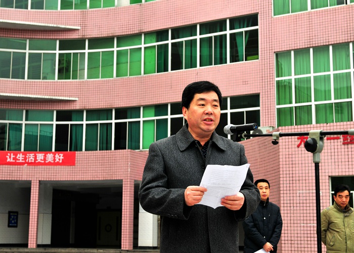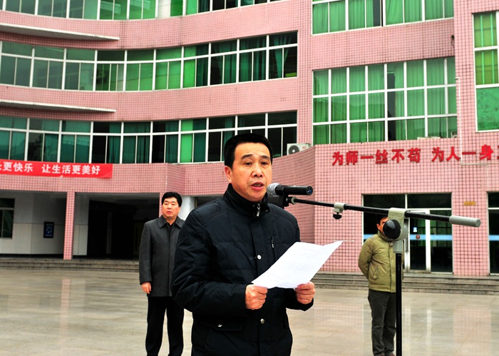仪式上,郭胜光校长首先简要回顾了学校在打造“瑞榴书香校园”,举办27届艺术节歌咏比赛等方面工作中取得的成绩,接着他代表学校提出了2015年学校高考的主要目标:高考本一上线突破310大关,上“211”、“985”名校人数突破90大关,力争有学生考取北大或清华。最后,他寄语高三的同学们百日冲刺,百分之百;分秒必争,分分必得,寄语高一高二的同学们勤奋踏实,严于律已,自强不息。通过此次开学典礼活动,老师们纷纷表示有了新的动力和更高的工作热情,教学教研的干劲更加足了;同学们也认识到了自己所肩负的责任,树立了明确的理想目标。