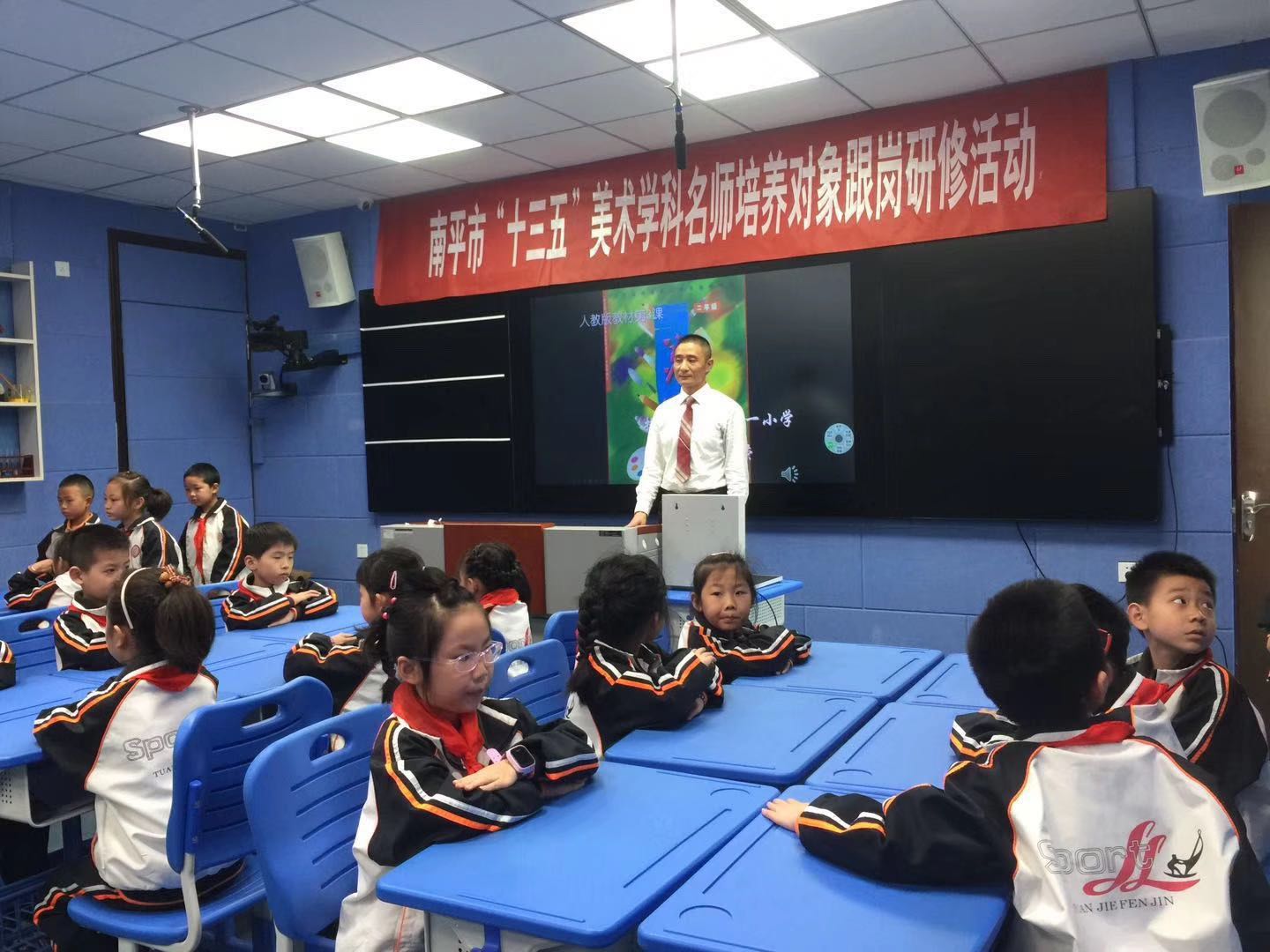 南平市“十三五”中小学教学名师培养对象(美术学科)第二次集中培训活动,2019年4月8-12日在我校和邵武实小展开,南平市教育学会美术教育分会会长、我校美术高级教师陈家辉作为导师为学员们开设了《凝练的视觉符号》示范课,来自松溪县三中的叶美琴、邵武市实验小学谢剑锋、建瓯市建安小学蔡建惠和浦城县实验小学吴炤华等四位名师培养对象分别开了研究课并汇报课题开展情况,建瓯市第一小学、福建省名师培养对象叶杨荣老师作为导师现场做了“乐趣美术”教学主张讲座并在邵武市实验小学开设了《点线面》示范课,南平市进修学院美术教研员、南平市教育学会美术教育分会秘书长杨庆柳老师主持这次活动。这次活动同时也吸引了邵武市各中小学美术教师,先后有60余人次现场聆听研修课和示范课,较好的起到辐射作用。