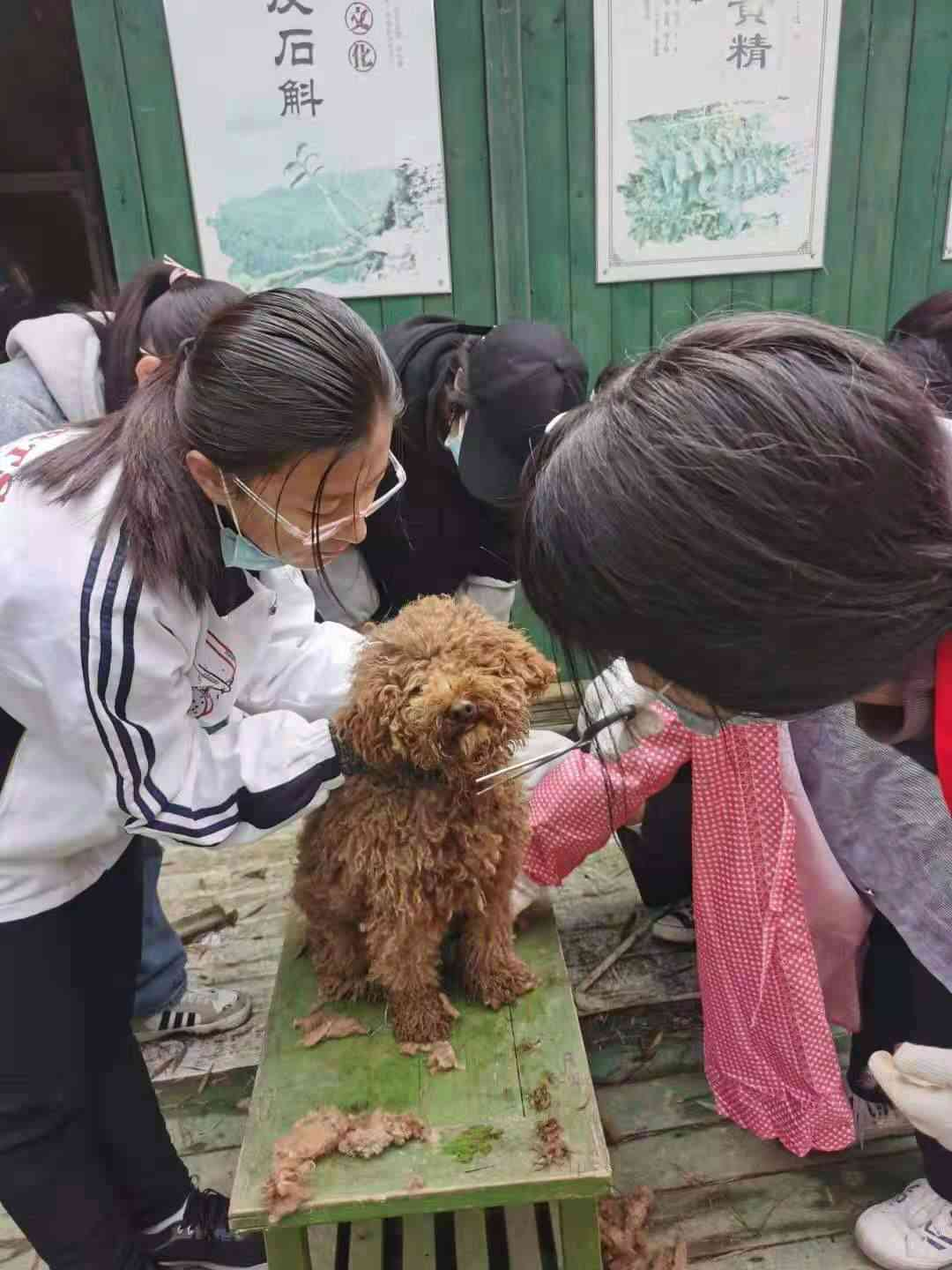 志愿者们的主要任务有捡柴火、为动物修剪毛发等。大家在志愿活动时,戴上手套,围上围裙,拿起剪刀,认真仔细地为动物们修剪毛发。