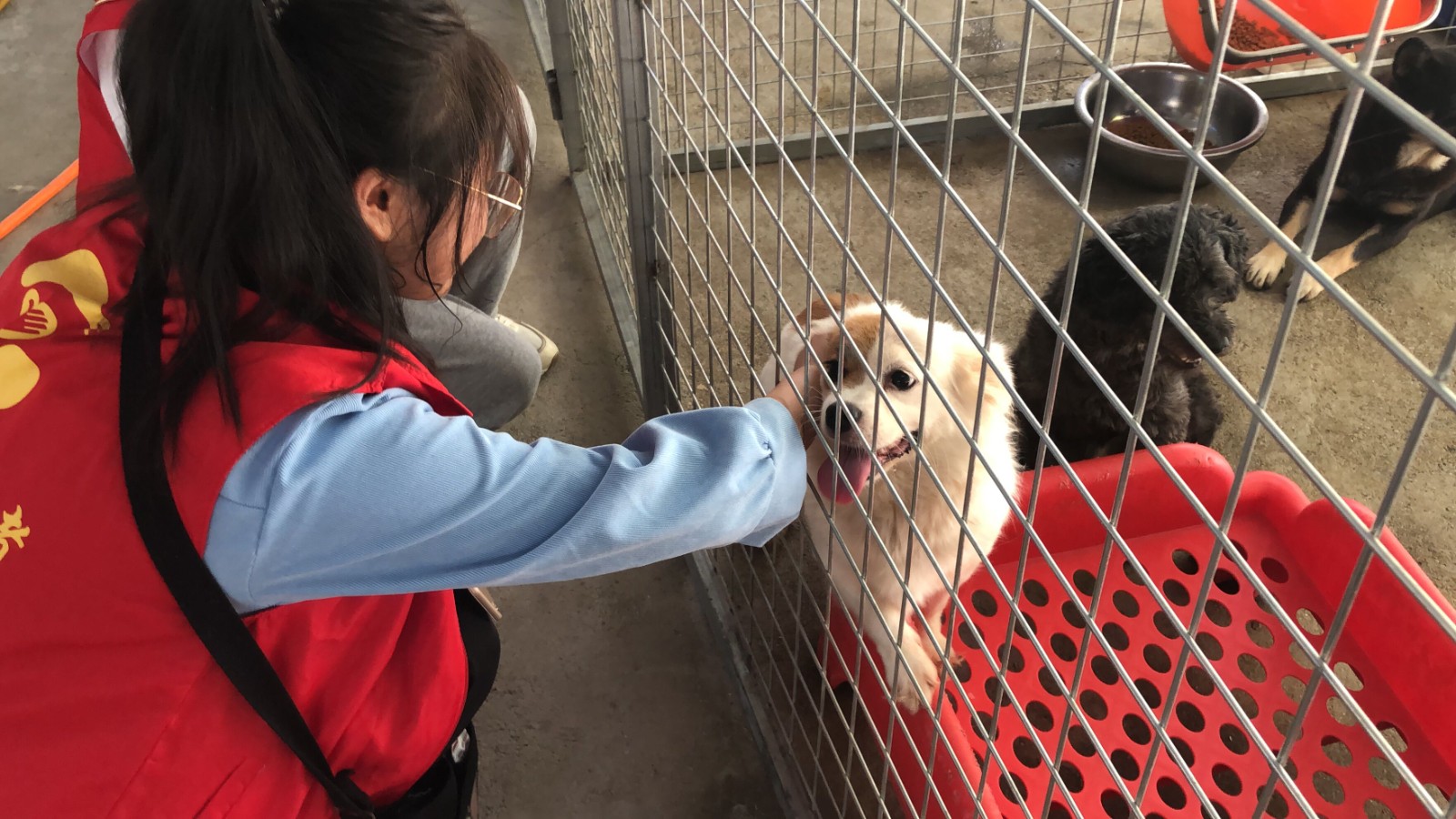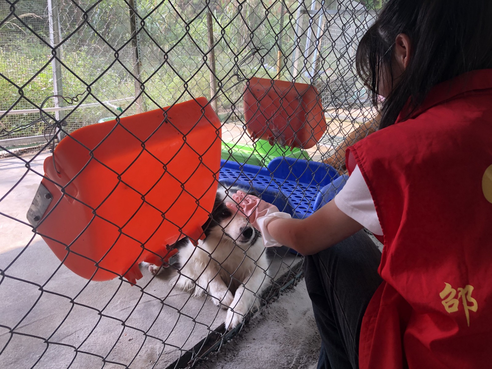 学生和老师穿着活动工作服和帽子,然后乘坐公交到达流浪狗基地前去志愿,在这几个小时里,我们参与了抚摸流浪狗,与它们玩耍,为工作人员分担工作等工作。在这个过程中,流浪狗都很热情。随后工作人员与我们讨论流浪狗吃的粮食,并且把几只小狗抱出来,志愿者很小心翼翼地抱起小狗,摸它们的头,为它们取名。途中,我们也发现这群流浪狗之前可能是很缺乏关爱的,当我们摸它们的头时,它们总会开心地蹲下身子。同时它们一直都对人类很友好,当我们触碰它们时,它们没有表现出抗拒的行为,并且也不会对志愿者进行过激的动作,我认为大家不应该对流浪狗带有偏见,应对它们有关爱之心
