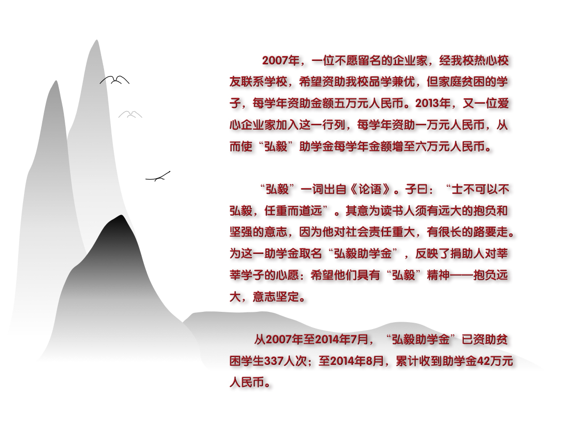 国旗下讲话 流动红旗 校园文化 群星璀璨 心理教育 资助中心 家长学校 弘毅助学金简介 作者:admin 来源:本站原创 日期:2012-09-10 人气:7934 上一篇:邵武一中2012年弘毅助学金资助贫困大学生发放表 下一篇:弘毅教育基金账户 通知公告 更多 【瑞榴 • 公告】2026年邵武一中第... 【瑞榴 • 公告】2026年邵武一中自... 【瑞榴 • 公告】2026年福建省邵武... 【瑞榴 • 公告】2026年福建省邵武... 【瑞榴 • 公告】2025年邵武一中第... 【瑞榴 • 公告】2025年福建省邵武... 最新动态 更多 【瑞榴 • 安全】交通安全记心间 ... 【瑞榴 • 党建工会】党建红映新春... 【瑞榴 • 思政活动】实地研学悟思... 【瑞榴 • 安全】守护食品安全 询... 【瑞榴 • 傅为旺化学奖】薪火传情... 【瑞榴 • 教研】瑞榴飘香赴教研,... 【瑞榴 • 德育】以训促能 精准赋... 【瑞榴 • 新年贺词】岁聿云暮敬往... 【瑞榴 • 安全】压实安全责任 守... 【瑞榴 • 学生活动】“馨香瑞榴 ...