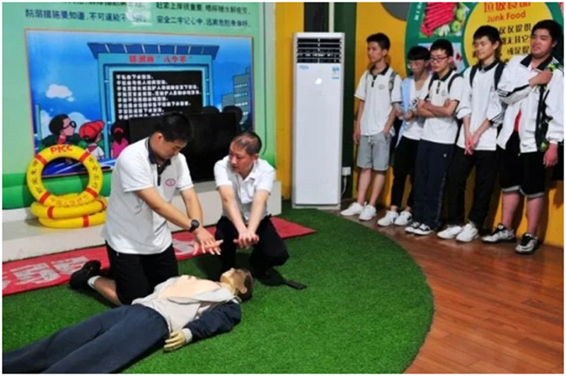 课堂上,郑医生为同学们讲解了溺水事故的危险性,预防溺水的重要性;并教授大家抽筋时如何正确缓解的方法,确定自身安全的情况下如何对溺水人员进行施救;最后模拟了心肺复苏的正确做法。