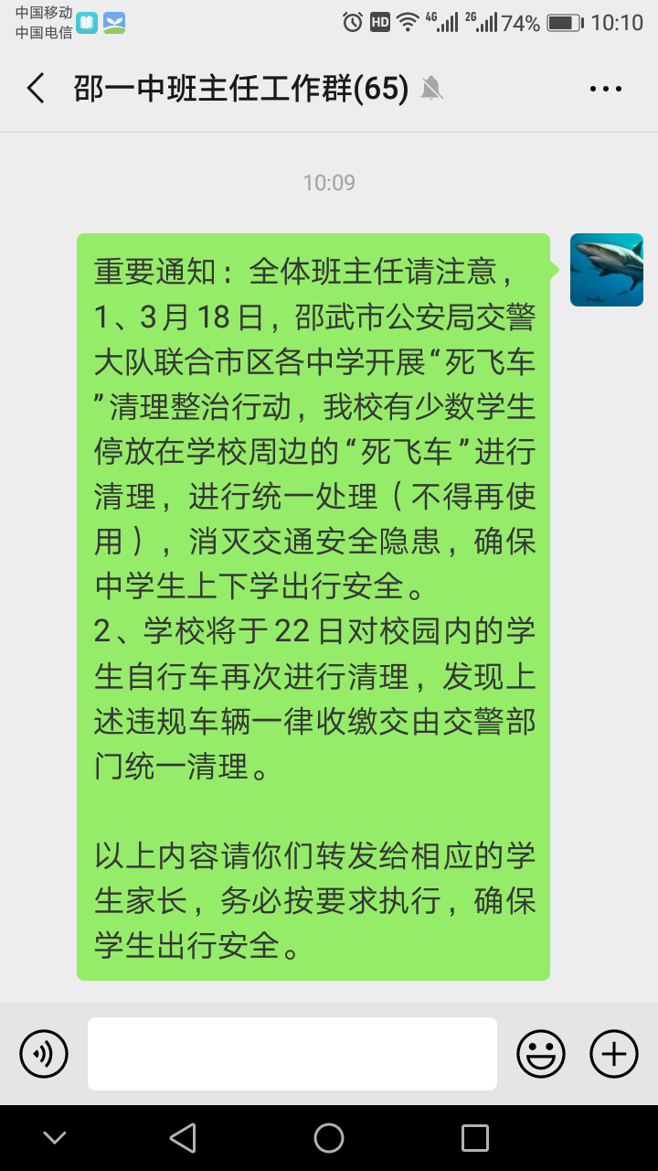 为创建校园良好的道路交通环境,依据《中华人民共和国道路交通安全法》,根据上级通知要求,更好的配合市公安局交管部门开展校园周边道路交通安全整治工作,预防发生交通事故,保护学生人身、财产安全,近期,我校开展了“死飞车”清理整治行动。