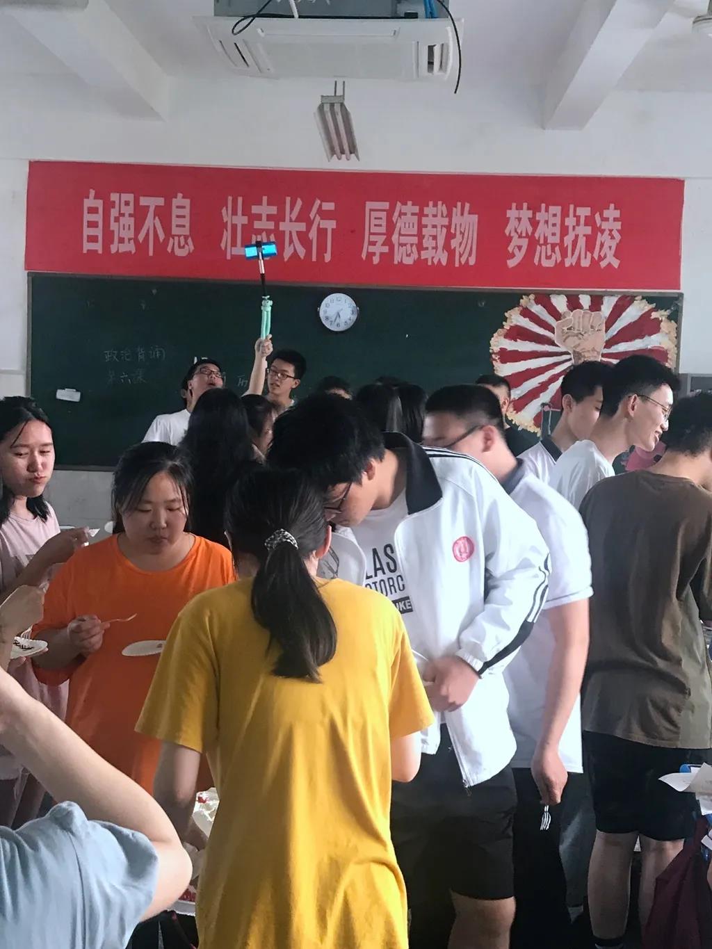 首先,班主任组织学生观看《十八岁的誓言》视频,引发学生强烈的共鸣,十八岁是勤奋、是激情,十八岁是梦想与责任,角色的转变,思想的深化,在这最美好的年纪,绽放最灿烂的微笑,书写最美妙的篇章;十八岁,少不了祝福与掌声,一首生日快乐歌响起,生日代表们点上蜡烛,一支支闪亮的蜡烛像一颗颗跳动的心,蛋糕上布满方块,方块上每一位同学的名字是那么的醒目,一个蛋糕象征一个团结的集体,心因集体而精彩,集体因心而自豪,每一位学生许下虔诚的心愿,在掌声与祝福中弥漫喜悦之情。
